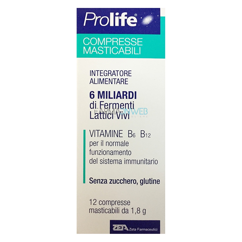 Prolife Masticabile è un integratore alimentare a base di fermenti lattici e Vitamine del gruppo B, utile per apportare una quota integrativa di tali nutrienti che favoriscono il fisiologico equilibrio della flora batterica intestinale.